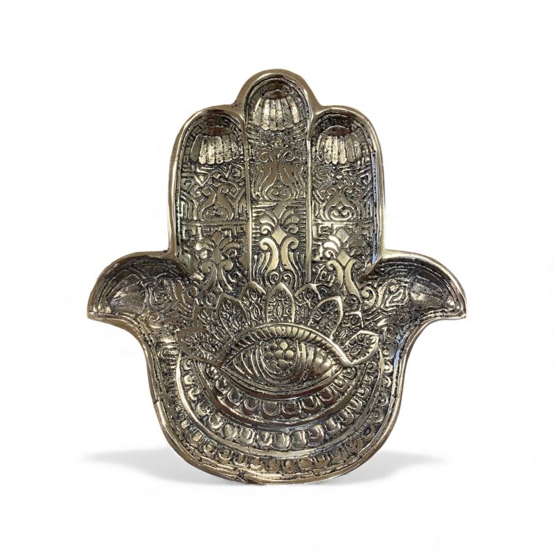 Entdecken Sie den charmanten Taschenentleerer aus hochwertigem Messingguss! Mit einem bezaubernden Hand der Fatima Motiv, das nicht nur Ihre Tascheninhalte stilvoll präsentiert, sondern auch positive Energie und Schutz symbolisiert. Diese exquisite Kreation wird mit der einzigartigen verlorenen Form Technik hergestellt, was jedes Stück zu einem unverwechselbaren Unikat macht. Perfekt für alle, die ihren Alltag mit einem Hauch von Kunst und Spiritualität bereichern möchten. Ein praktisches Accessoire, das nicht nur funktional ist, sondern auch als dekoratives Highlight in Ihrem Zuhause dient!
